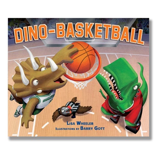 “Dino Basketball” written by Lisa Wheeler, illustrated by Bary Gott. Text copyright © 2011 by Lisa Wheeler. Illustrations copyright © 2011 by Barry Gott. Reprinted with the permission of Carolrhoda Books, a division of Lerner Publishing Group, Inc. All rights reserved. No part of this excerpt may be used or reproduced in any manner whatsoever without the prior written permission of Lerner Publishing Group, Inc.